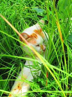 When I visited our shrine, there were many beautiful things to see. I even found a cat there! He was napping in the bushes. I love our neighborhood - there is always something to explore!
